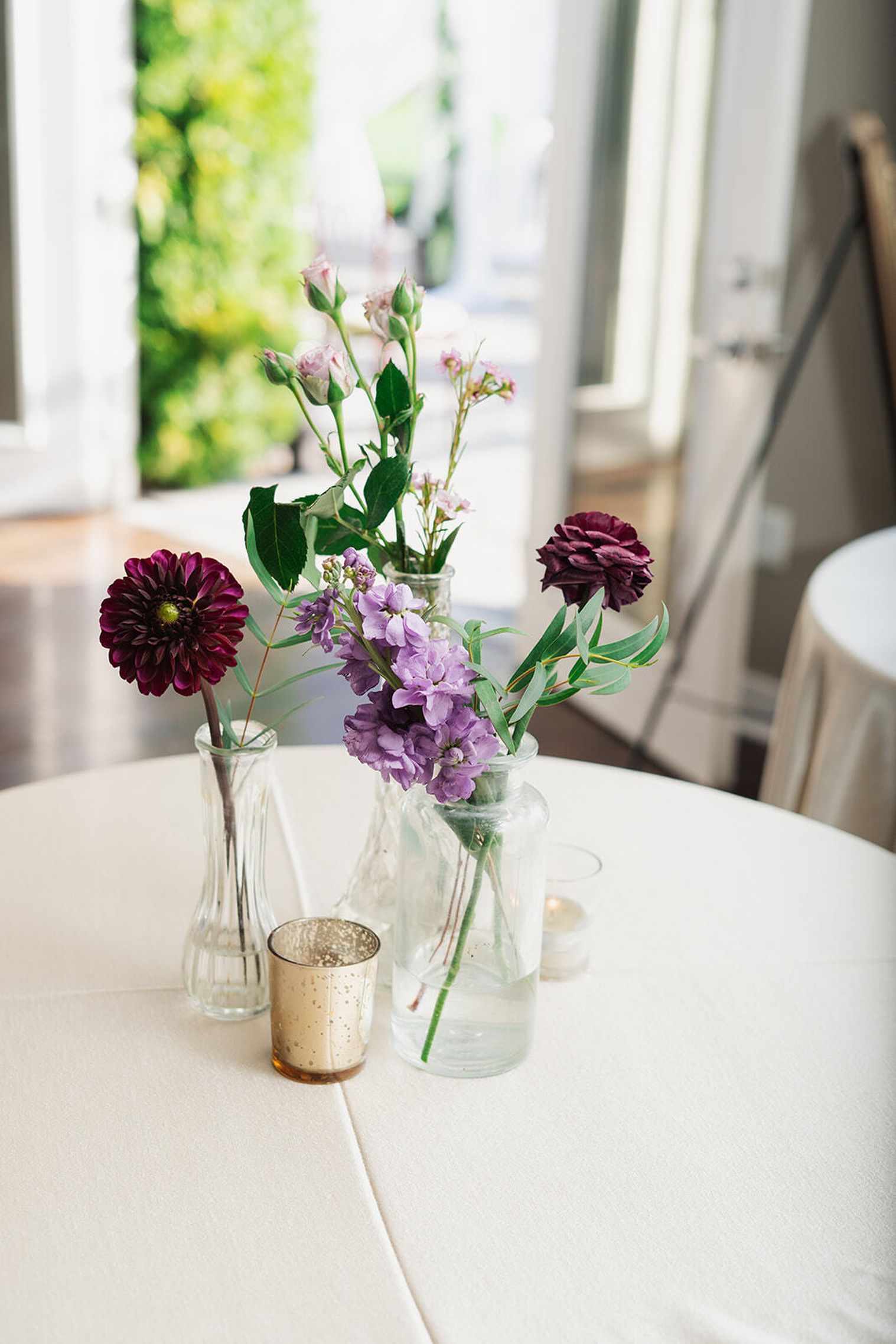 Depending on your guest count, table centerpieces can easily be one of your highest ticket items for your floral budget. Even small arrangements add up fast if you have a lot of tables. There are several things to consider, budget included, when choosing what to have as your floral table centerpieces: